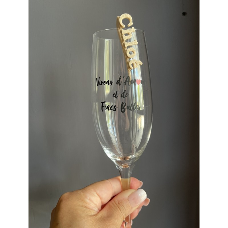 N'oubliez pas de sauvegarder votre personnalisation pour pouvoir l'ajouter au panierConçus avec soin, nos prénoms sont fait avec précision pour s’adapter parfaitement à vos verres, servant à la fois de décoration raffinée et de marque-place élégant.
